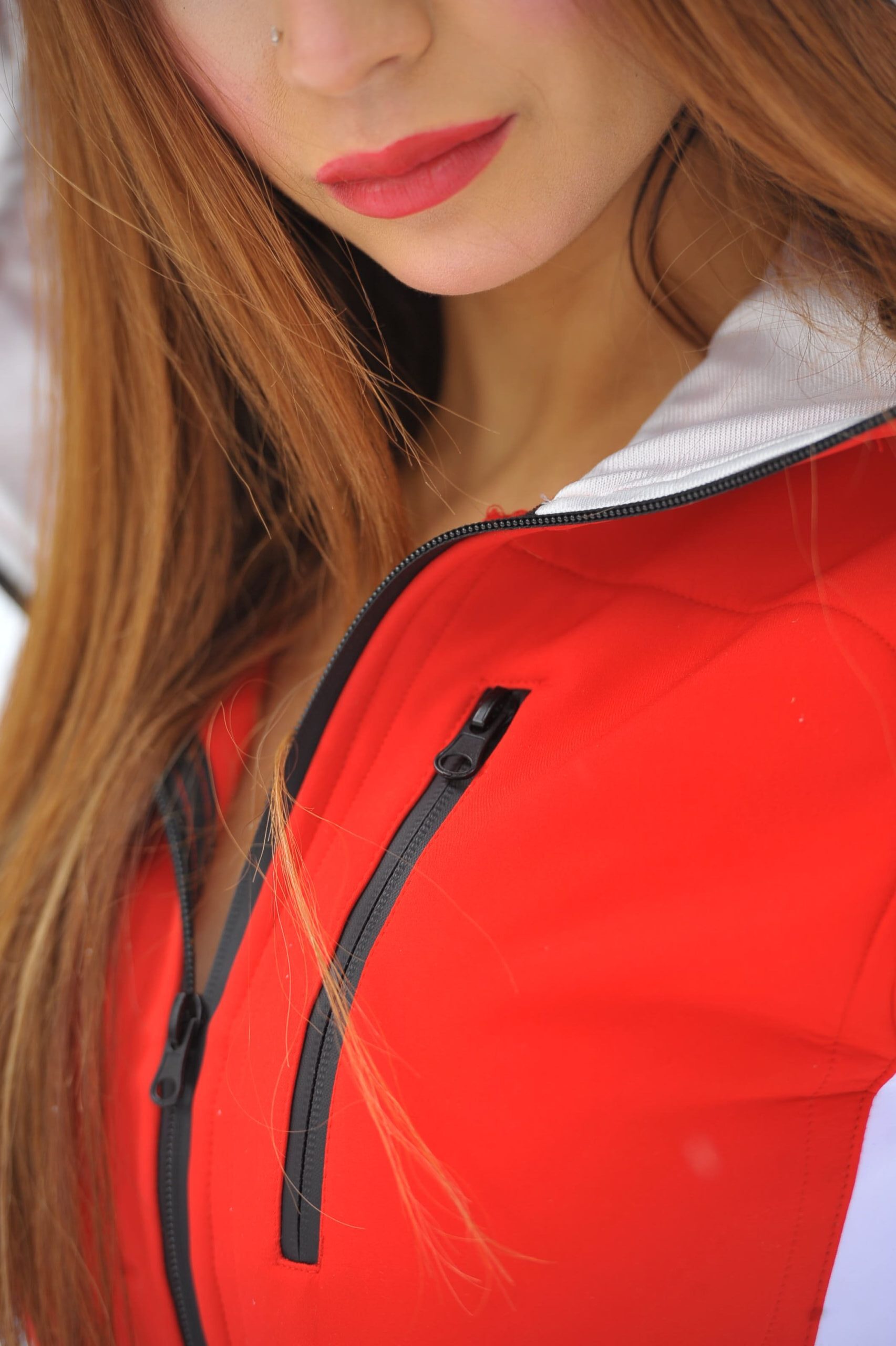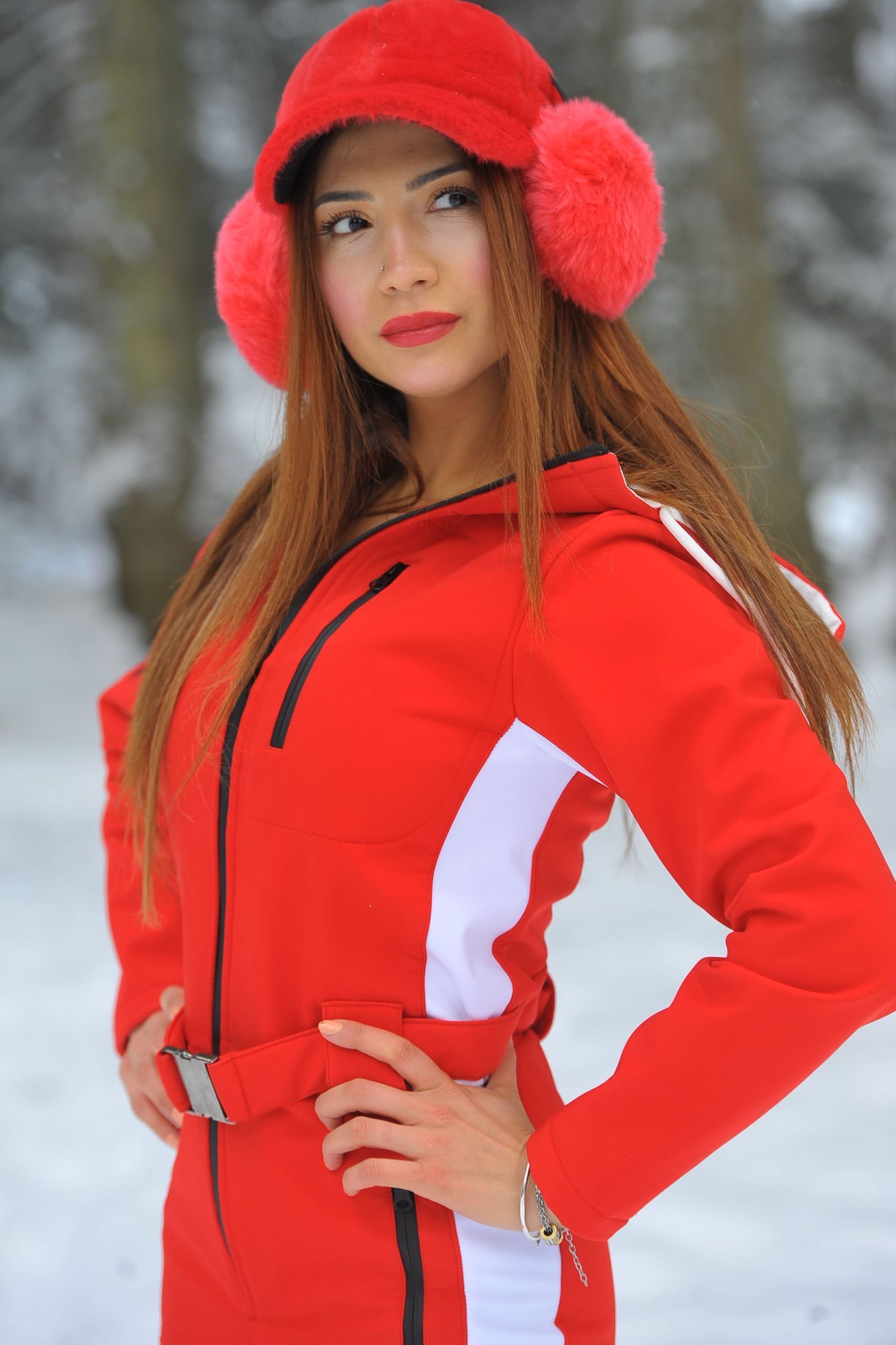 Kırmızı Beyaz Kadın Kayak Tulumu